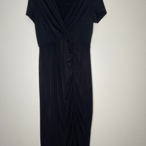 Flatterende figurnær kjole fra HM. Asymmetrisk kjole med lange ermer. Størrelse M. Ikke brukt, lappe henger fremdeles på.