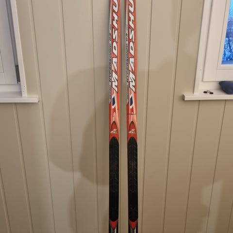 Gir godt feste og fin glid i oppkjørte løyper. Det står navn på skiene, men dette kan sannsynligvis fjernes.