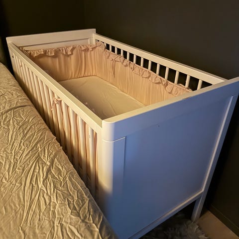 Sebra seng selges da vi ikke lenger har bruk for den. Kjøpte den brukt selv med bruksmerker. Hadde en plan om å fikse det, men ble aldri gjort her. Selges derfor billig. Kan kun brukes i lav posisjon så vidt jeg vett, men har aldri hatt behov for noe annet. Har vært veldig fornøyd med sengen!