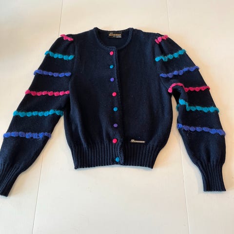 Selger en kjempepent brukt Geiger cardigan rett fra 90-tallet!