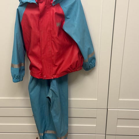 To-delt tegnsett fra Mikk-Line i fargen Woodrose og i resirkulert polyester. Brukt lite av 1 barn og har ingen bruksmerker jeg kan se. Les gjerne mer på nettet om denne dressen. Regnhatten er fra Pytt pytt og str 51/52.