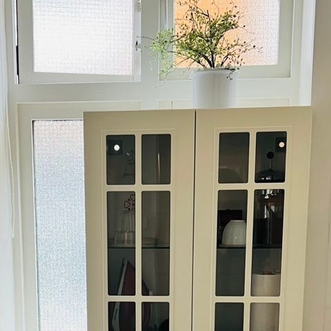 Skap (Billy) som har stått i gangen med dører (oxberg). Et lite merke i stiden, se bilde.