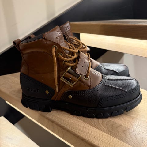 Polo Ralph Lauren støvler i størrelse 46. Støvlene er svarte og har en robust såle med godt grep. Designet for bruk i ulike værforhold og terreng. Laget med materialer som gir slitestyrke og komfort.