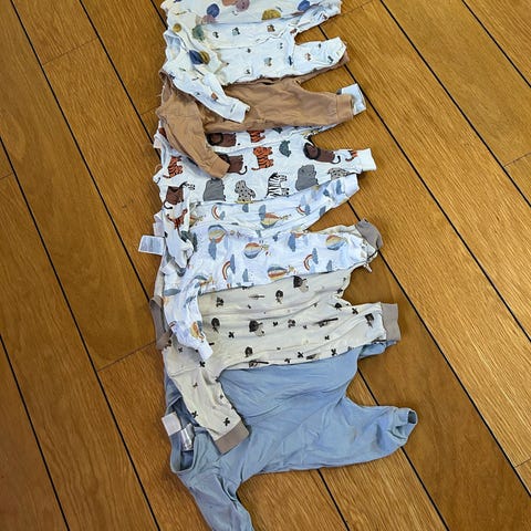 Selger syv stk pysjer i str 50/56. Fire av dem har fot. Hentes eller sendes.