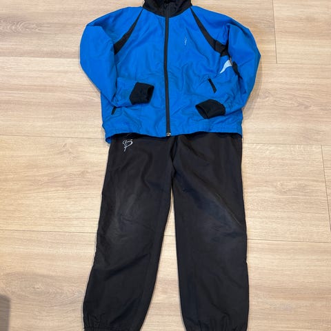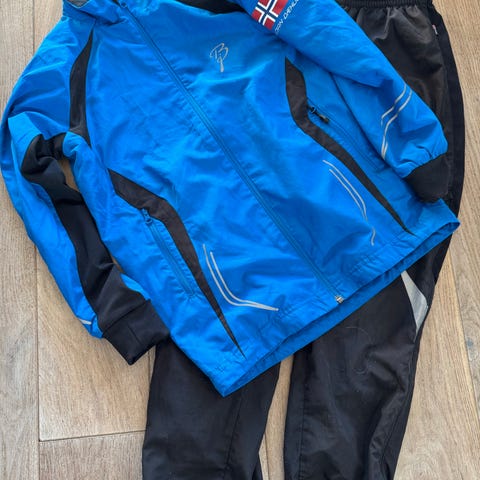 Bjørn Dæhlie skidress str 140.Dressen fremstår som pent brukt med unntak av at det er litt merke etter skismøring/klister.Har forsøkt å få bort med sitronsåpe og flekken har blitt mindre (Se bilde) Litt vanskelig å få fram helt riktige farger på bildene,men kan ta nye om ønskelig.