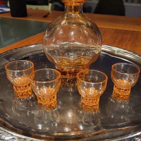 3 svarte kopper, lys gul inni. Tror de heter Palett fra Stavangerflint.