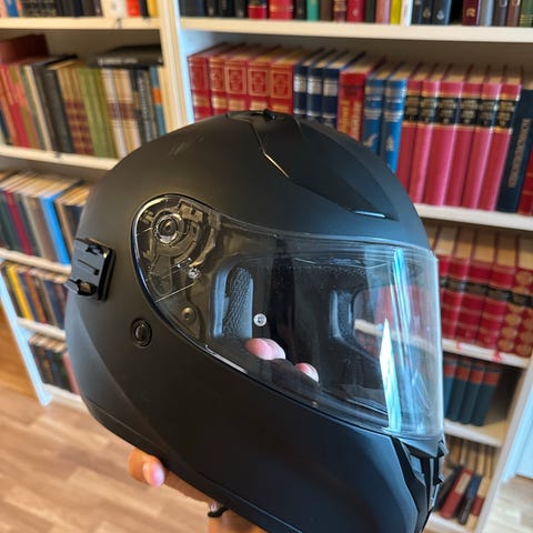 V can Crosshjelm str. M 57-58 med GoPro feste på siden. Fremstår som nesten ny og er svært lite brukt.