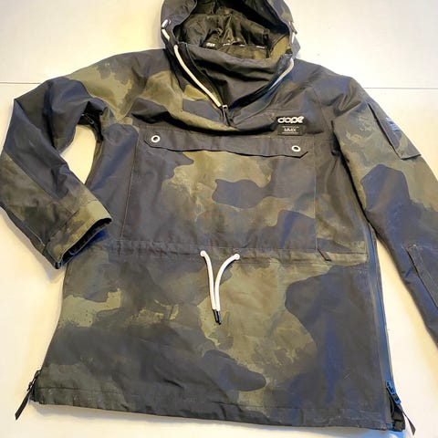 Helly Hansen Ski & Snowboard jakke. Jakken har mange lommer, avtagbar hette og et snøskjørt , og har en elastisk midje som lukkes med trykknapper. Lufteventiler under armer, regulering i midjen. Pent brukt. Str XS