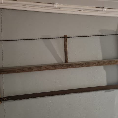 Stor grindesag med grovt blad. 96,5 cm x 40,5 cm.