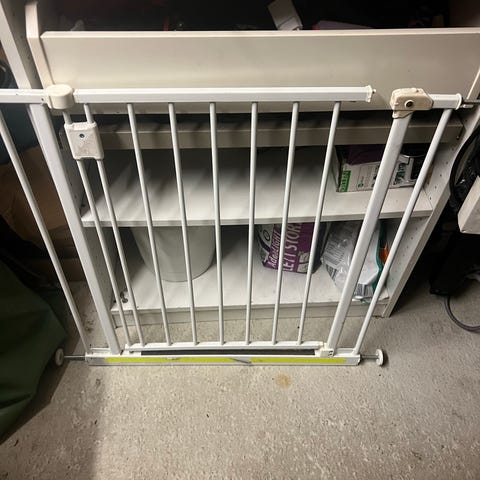 BabyDan Multidan metallbabygrind i hvit farge. Grinden er veggmontert med en høyde på 68 cm og en bredde som kan justeres fra 62,5 cm til 106,8 cm. Avstanden mellom stengene er 5,5 cm. Produktet leveres med nødvendig monteringsutstyr. Grinden er ubrukt.