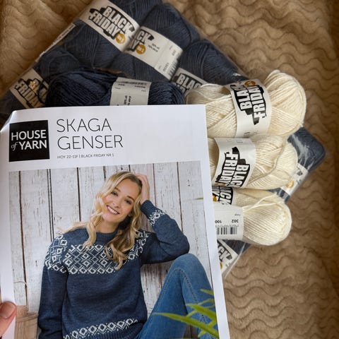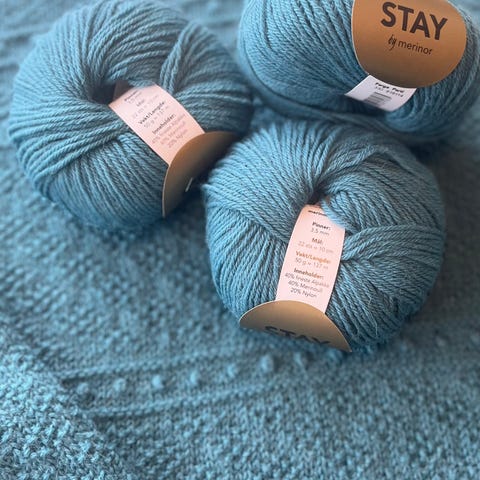 Skulle brukes til å strikke Mira Jakke til barn, gratis oppskrift finnes på House of Yarn. 8 nøster holder til størrelse 12 år.