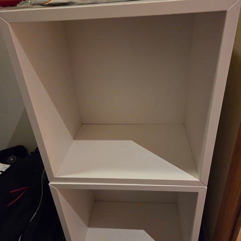 Brukt til lagring av bamser på barnerom. Jeg har 2 stk. Begge er foliert med treimitasjonsfolie. Nypris rundt 1000 kr stk.