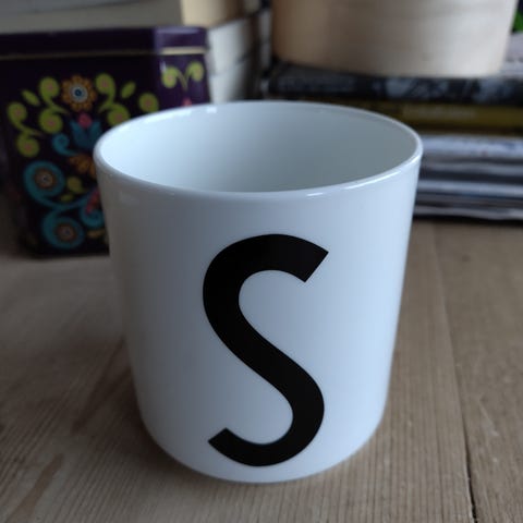 Design Letters krus med bokstaven S i svart på hvit porselen. Passer til daglig bruk og kan brukes til varme og kalde drikker.