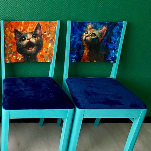 Kan følge med to stoler til for 500kr, men disse er mørkeblå i fargen.