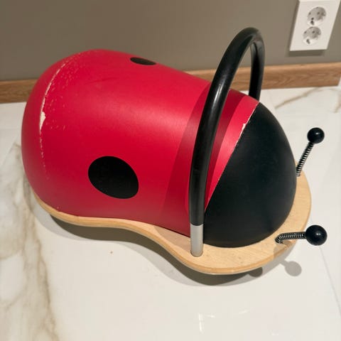 "Det unike med en Wheely Bug sammenlignet med lignende leker er at den kan rulle både fremover, bakover, til siden og rundt seg selv. I tillegg har den et lavt tyngdepunkt, så det er vanskelig for barnet ditt å velte på den, i motsetning til andre kjøretøy".