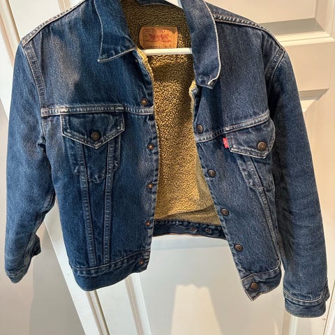 Levi's Andre jakker i størrelse S for kvinner, laget av blå denim. Jakken har en fleecefôret innside for ekstra varme.