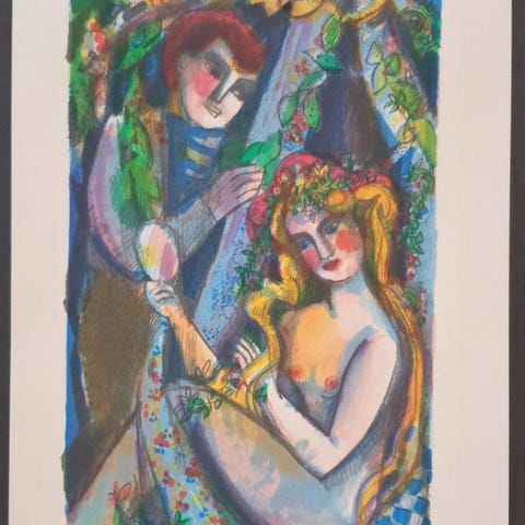 Innrammet litografi av den franske kunstneren Marcel Mouly (1918-2008).