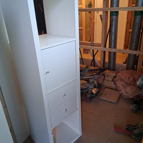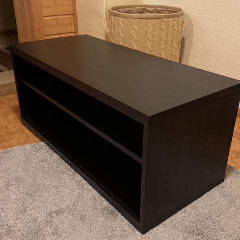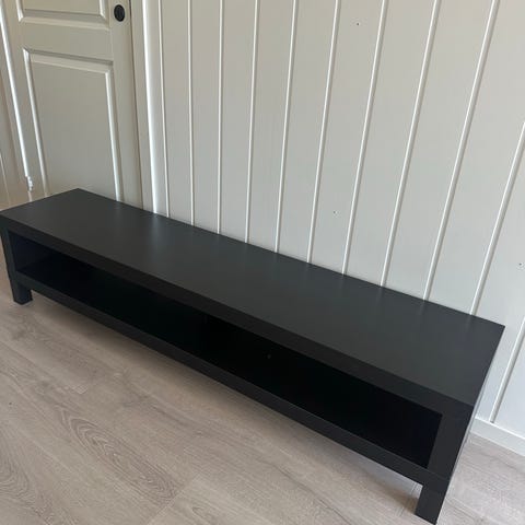 Ikea TV benk, hvit med skuff i midten, skapdører på begge siden. Må hentes.