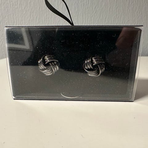 Selger en metall/sølvfarget slipsnål og et par gull fargede mansjettknapper. Mansjettene er aldri brukt, mens slipsnålen er brukt et fåtall ganger. Ingen merker eller skader på den.