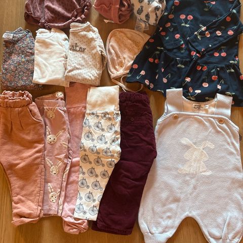 H&M barn klær for jente i størrelse 74, laget av bomull. Inneholder flere plagg i flerfarget design, egnet for små barn.