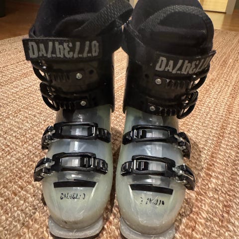 Dalbello ski støvler i størrelse 245 mm, tilsvarer 38-39, med grønn farge. Støvlene har fire spenner og justerbar stropp for bedre passform. Egnet for skiaktivitet.