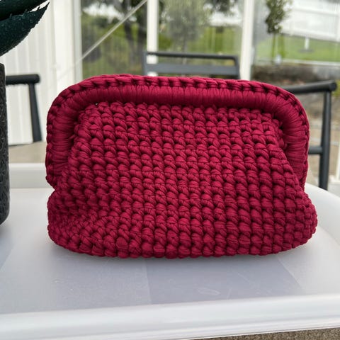 Heklet clutch veske, Ceriserosa . 20 cm veskebøyle