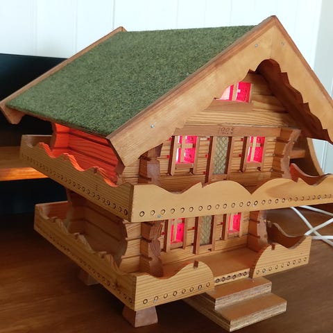 Stabburet er 38cm høyt, 36 på det breieste 32 cm dypt