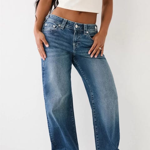 To par True Religion Bobby baggy denimbukse i blå og lyseblå farge, størrelse W28 L32 dame.