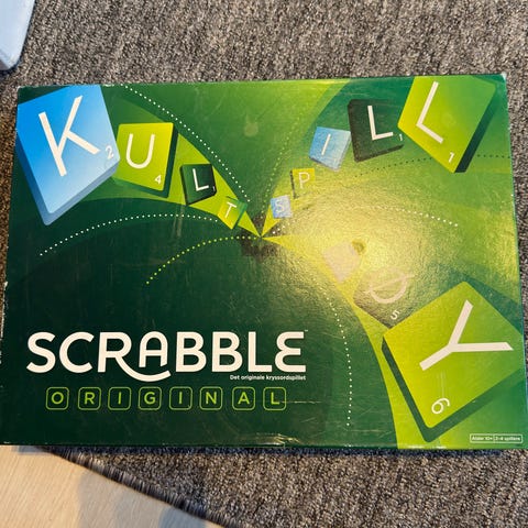 Scrabble Original brettspill med klassisk design og norsk språk. Spillet består av bokstavbrikker og brett for ordspill, egnet for flere spillere.