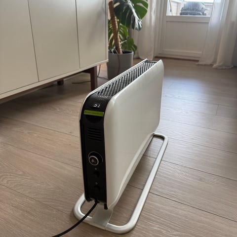Mill Instant 2000W gulvovn i hvit farge. Elektrisk varmeovn med effekt på 2000 watt, designet for bruk i hjem eller kontor. En bærbar og plassbesparende varmeenhet.
