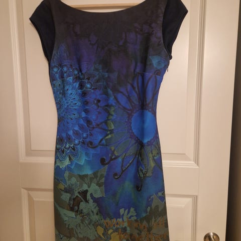 Kul kjole selges da den aldri er brukt. Grønn fløyet. Åpen rygg.