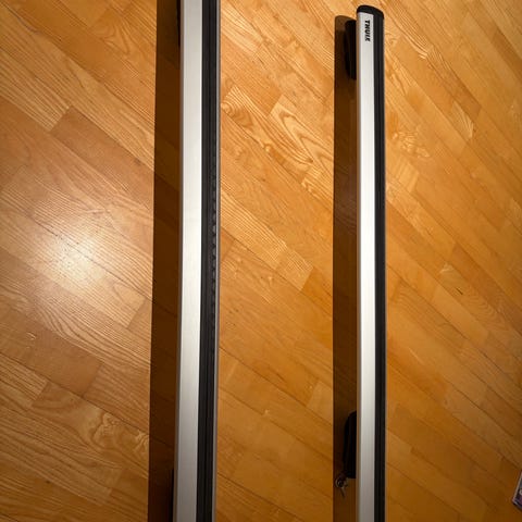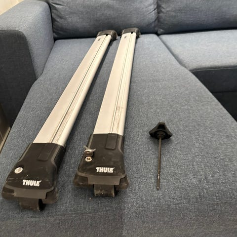 Thule takstativ tverrstenger laget av aluminium. Passer til montering på bil med takrails.