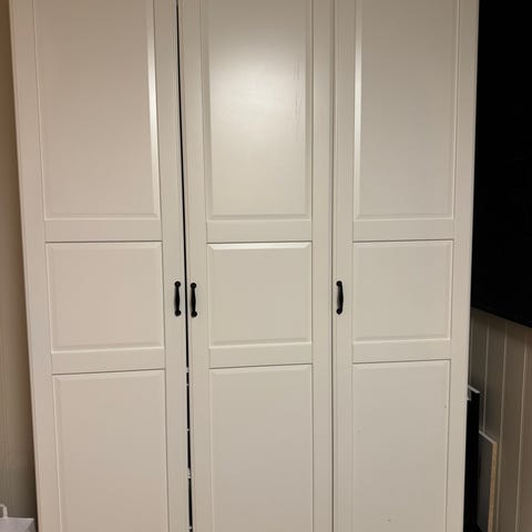 PAX garderobeskap 100×236 cm med BERGSBO hvite dører og KOMPLEMENT innredning