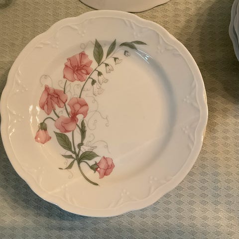 KAMLA , made in GDR servise som inkluderer 12 kopper, 12 asjetter, 12 tallerkener og sukker og fløtesett. laget av porselen med en enkel design. Passer for daglig bruk i kjøkken og spisestue.