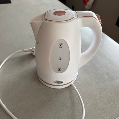 Cloer kjele i rustfritt stål med Cool Wall-funksjon. Egnet for oppvarming av væsker. Har et håndtak og ledning for tilkobling til strøm.