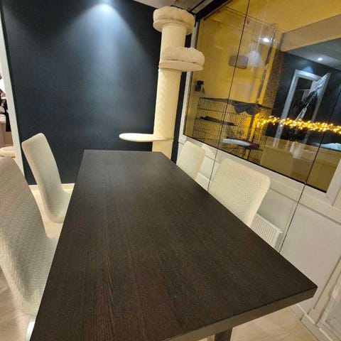 Pent brukt spisebord i dempet svart farge i fin stand. Ny pris rundt kr 8000.