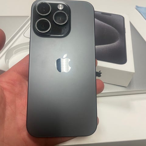 Selger en pent brukt iPhone 15 Pro (128 GB) i fargen Natural Titanium. Telefonen er brukt i ca. ett år og fremstår som svært pen / tilnærmet strøken.