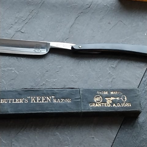 Gammelt "ærverdig" barbersett fra ca 1930-1940