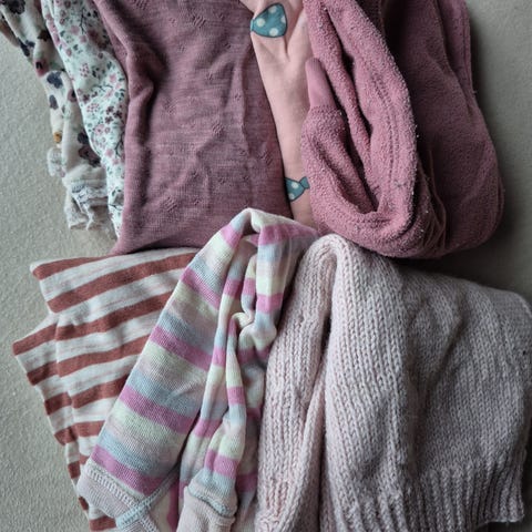 Alle plagg er brukt til barnet ble ca 108cm høy, noen hadde passet lenger å. Kan ta mål.