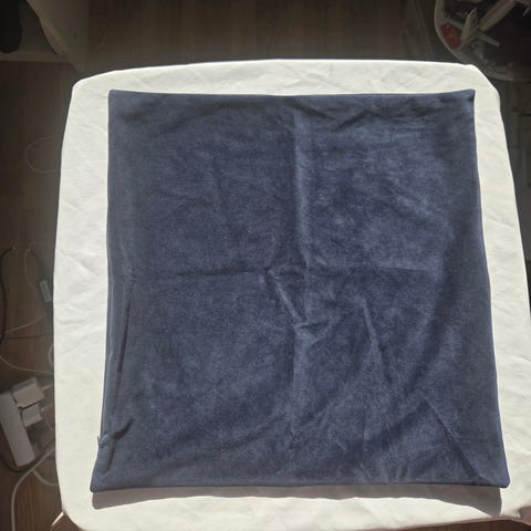 Hemtex KID tekstilprodukter .Produktene har et mønster i mørk blått på lys bakgrunn og er produsert i India.