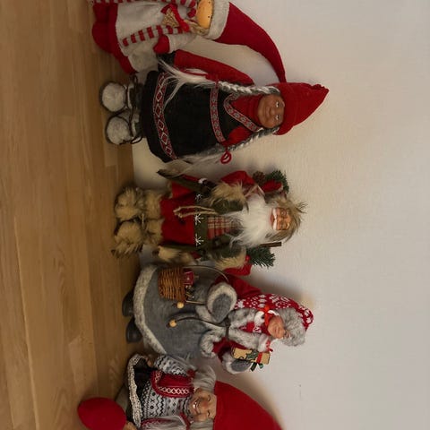 Stor rød nisse ca 65cm. Liten hvit nisse ca 20cm. Liten mus ca 40cm.
