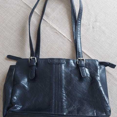 Den har ingen bruksmerker utvendig, kun en liten grå flekk inni vesken (se bilde).