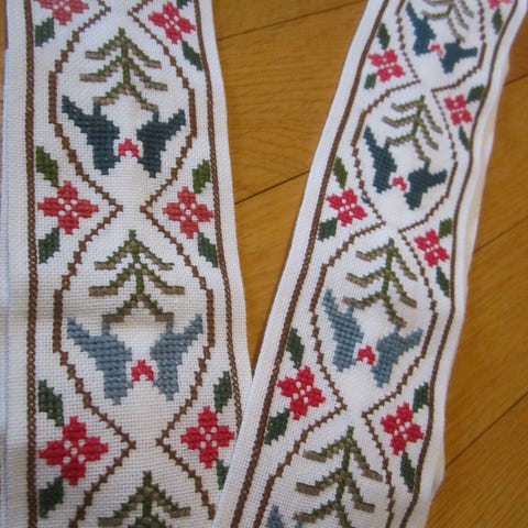 Vintage Håndlaget Brodert Pute 44x32 cm