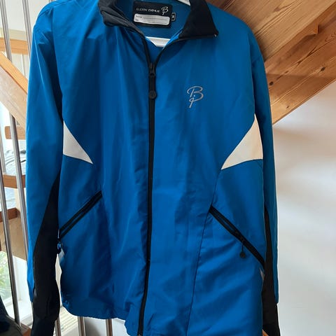Bjørn Dæhlie skijakke i rød og hvit farge. Jakken har glidelåslommer og er designet for trening og utendørs bruk.