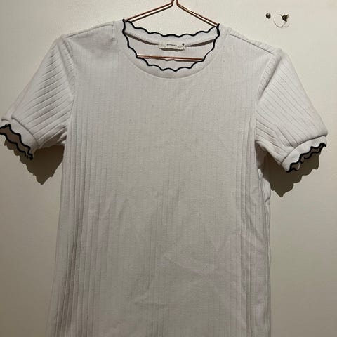 Søt topp med blomster og blonder. Har ikke lapp, men passer meg som er en str.36/S. Vil også tro den passer en liten M.
