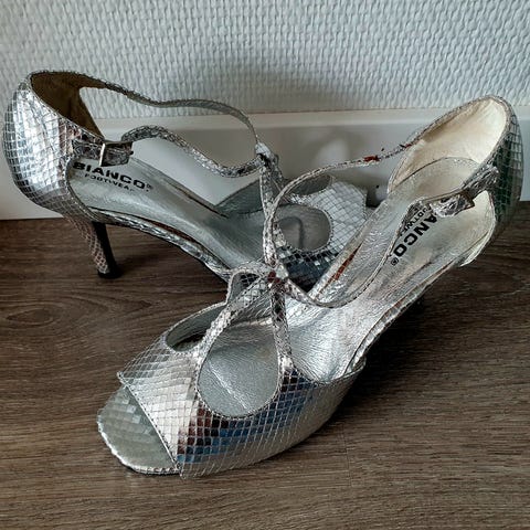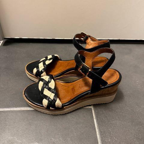 Selger nye glam sandaler med dekorative stener. Skoene er i semsket skinn med åpen hæl og ankelrem i nøytral beige som matcher til alt.