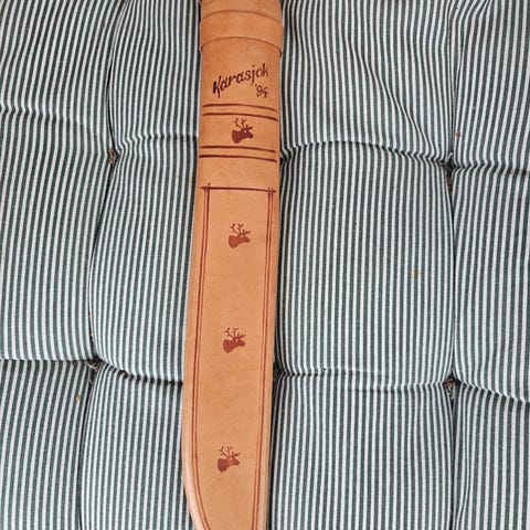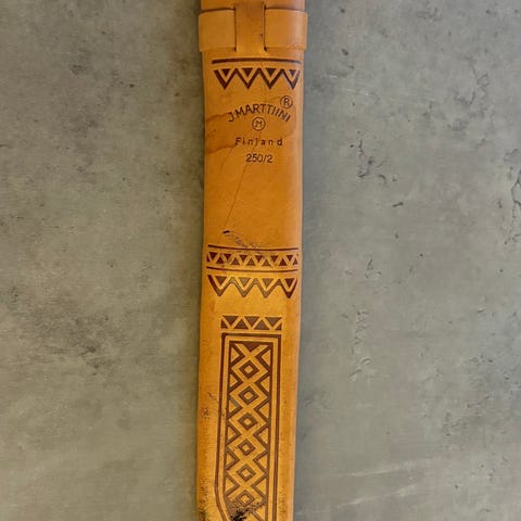 Denne finske kniven har knivblad av karbon stål og skaft av bjørk. Knivbladet går gjennom hele skaftet som gjør kniven bra til hardt arbeid. Dette er en bra turkniv som er også veldig god til å spikke med.