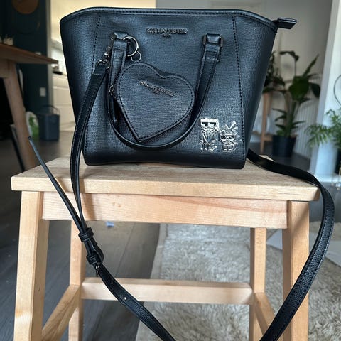 Fin og praktisk veske. Stor plass i den, en stor lomme og en liten lomme inni. Vesken kan strammes for å få den mindre når en ikke har så mye oppi den. Denne er i den vanlige størrelsen, ikke large eller mini. Veldig inn farge, som passer hele året. Denne fargen er utsolgt og litt vanskeligere å få tak i. Den har en glidelås lomme i front, og kan også brukes som ryggsekk. Det ligger video av dette på olend.net.