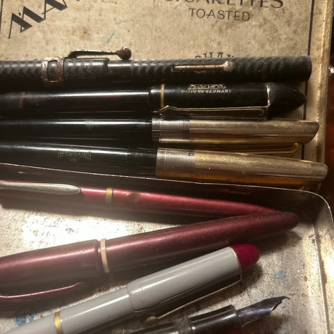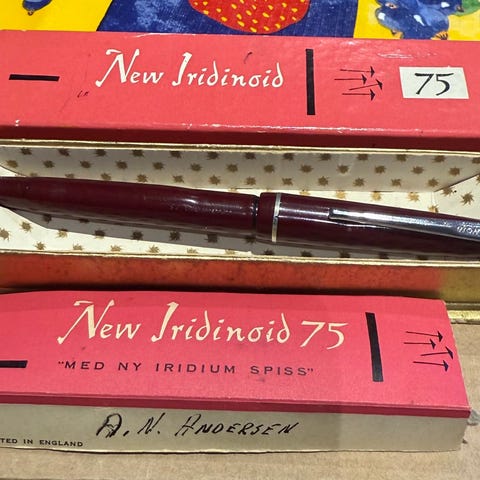 Jeg har vasket gjennom pennen, fester ny latex blekksekk og fyller ved å klemme sekken og dra blekk gjennom pennen. Skriver pent ved dyppetest i blekk, se bilde. En 75 år gammel penn vil alltid kreve litt av eier.
