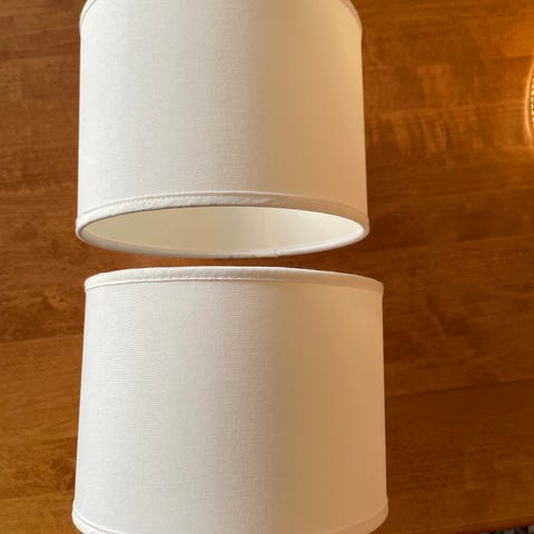 Selger 2 flotte lamper som er f.eks superfine å ha i vindu. Litt nøytrale farger, 13 cm diameter og høyde 10 cm på selve kuppel men totalhøyde 13,5 cm. Ingen skader. Selges kr 750 pr stk eller 1400 kr samlet. Pakker godt ved sending